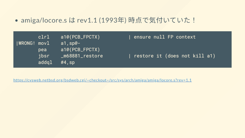 clrl a1@(PCB_FPCTX) | ensure null FP context |WRONG! movl a1,sp@- pea a1@(PCB_FPCTX) jbsr _m68881_restore | restore it (does not kill a1) addql #4,sp